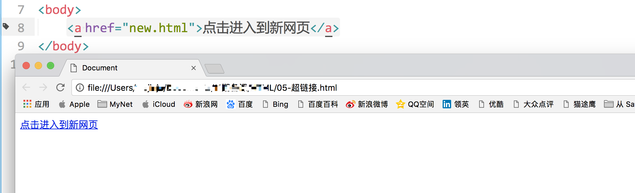 • <title>:指定整个网页的标题,在浏览器最上方显示。