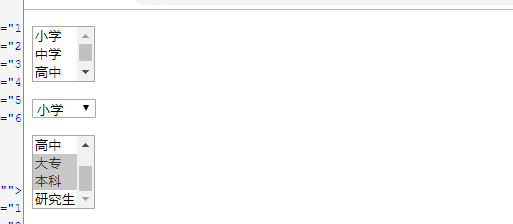 size="3" :如果属性值大于1,则列表为滚动视图,默认属性值为1,即下拉视图