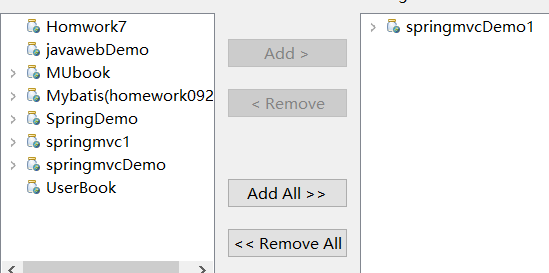 左边选择运行的项目,点击Add>,然后点击完成。