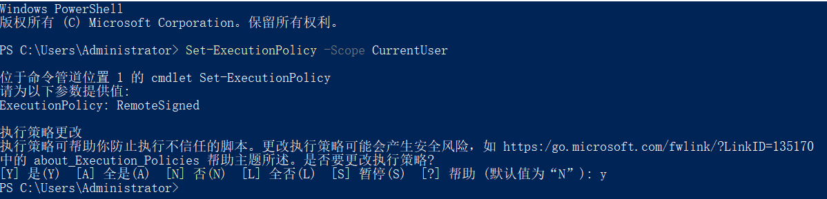 4》出现ExecutionPolicy: ,填入RemoteSigned;