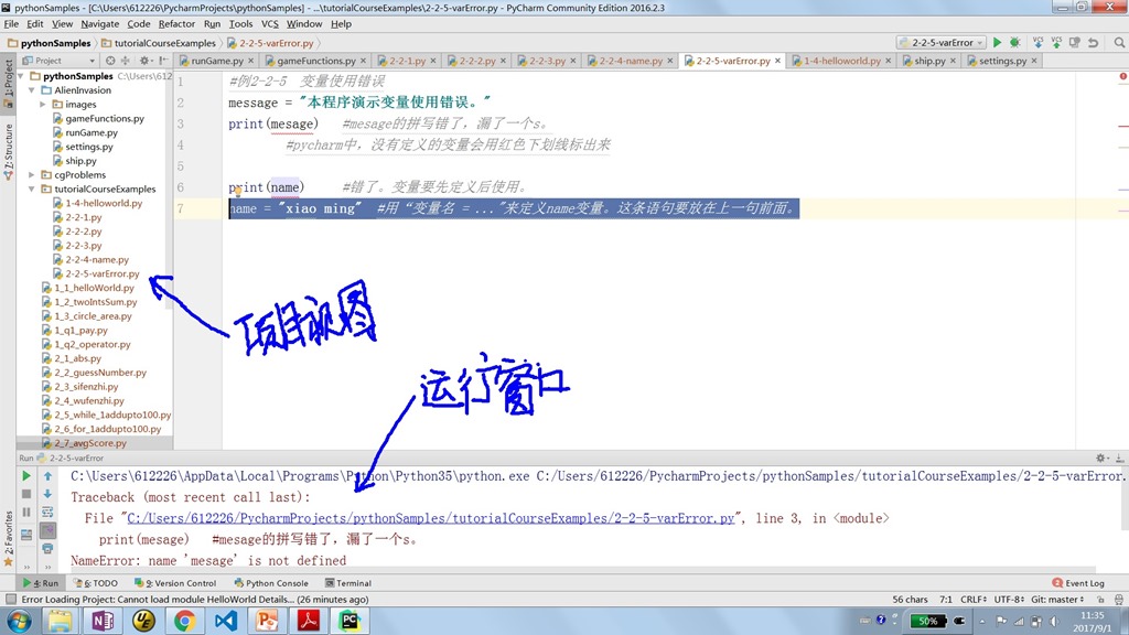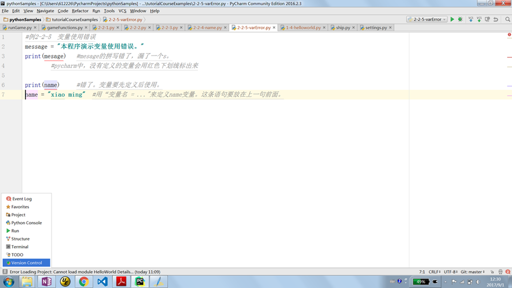 pycharm程序界面一般有很多子窗口,如图1所示。