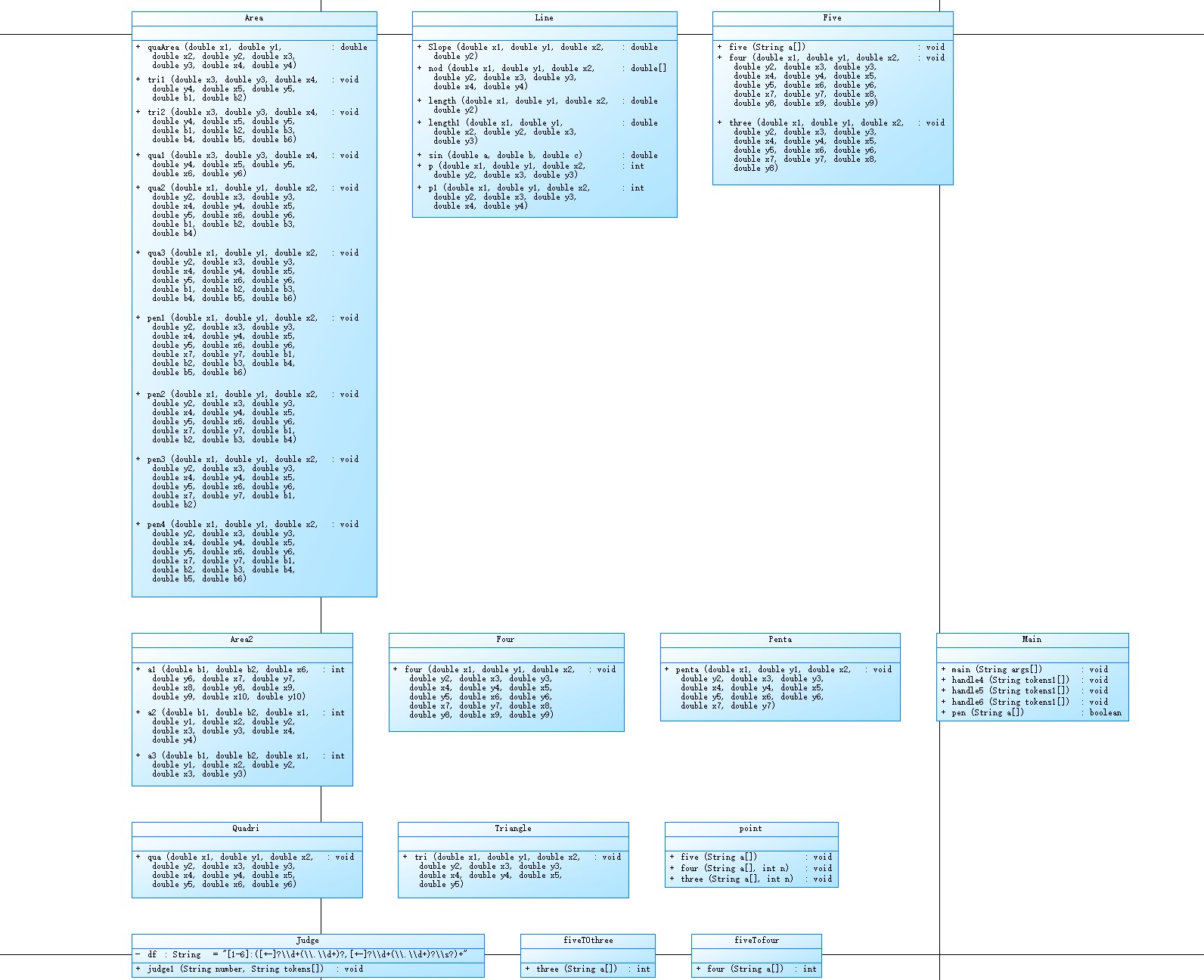 这三周,我们写这个pta其中修复了很多bug,比如在写四边形的时候,由于没有应用到类的分类,导致主函数的代码量超级长,在运行的时候输进去啥都显示不出来,当想去找错误的时候,发现根本找不出来,因为代码太过长了,,只好删了全部重新写,从那次之后我就知道了如何去分类。