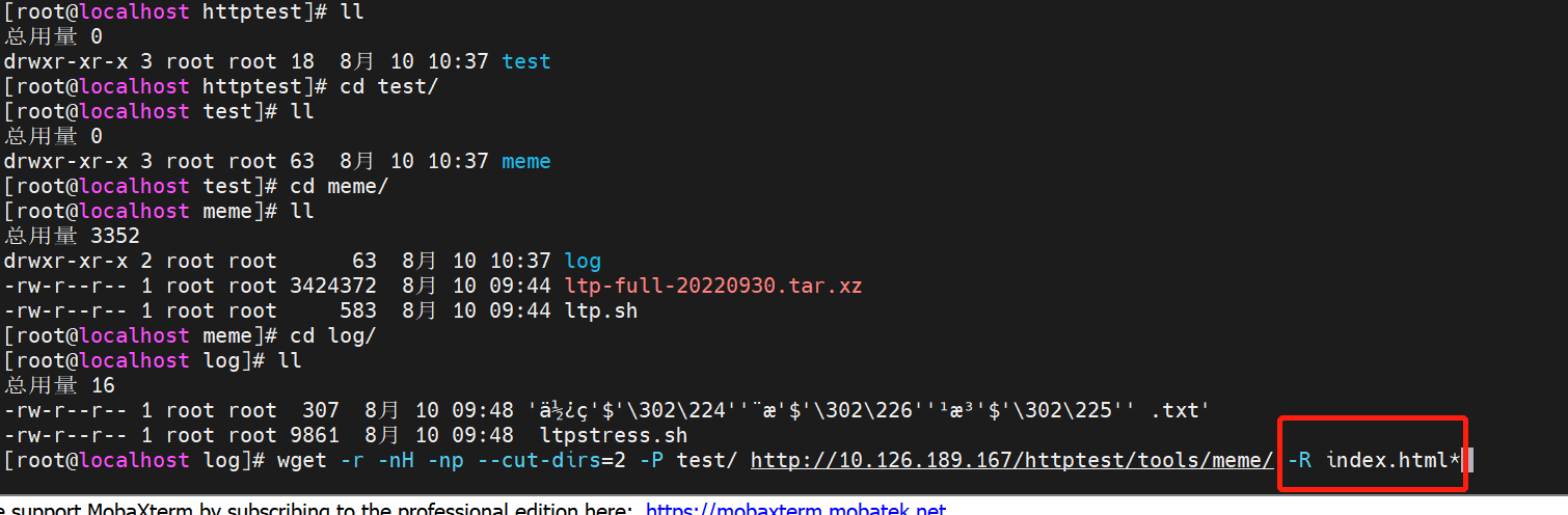 下载 http://example.com 网站上 packages 目录中的所有文件。其中,-np 的作用是不遍历父目录,-nd 表示不在本机重新创建目录结构。