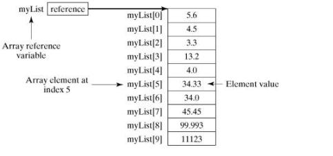 下面的图片描绘了数组 myList。这里 myList 数组里有10个double元素,它的下标从 0 到 9。
