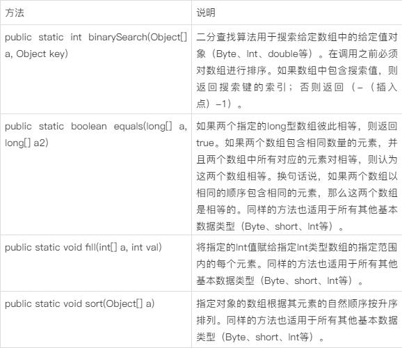④ 查找数组元素:可以使用binarySearch方法对数组进行二分查找法操作。