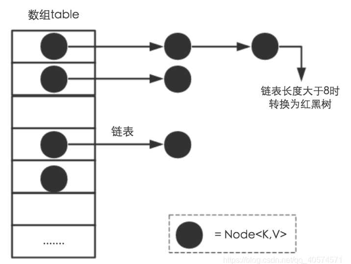 存储结构(HashMap 的数据存储结构是一个 Node<K,V> 数组,在(Java 7 中是 Entry<K,V> 数组,但结构相同))