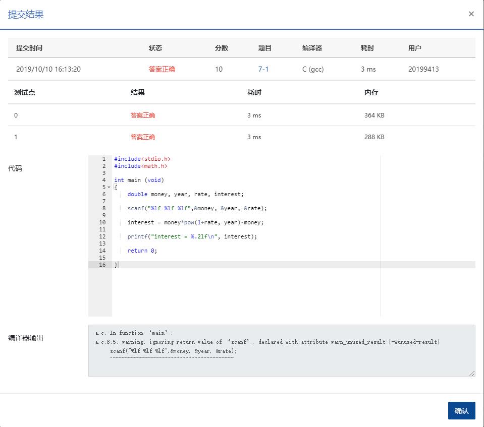 - 再后来去问了一下别人,他们说money 和year 都用浮点型变量去打,结果还真的对了,但我觉得这样搞有违题意,于是我就再试了几次用整数型变量来打money 和year,结果都是错误,但我一直没有搞懂为什么都要用浮点型变量来打,问别人他们回答也很模糊很不耐烦。