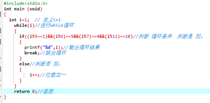 - 数据处理:用while语句进行循环,判断是否符合条件,符合就输出,不符合位数加一后继续。