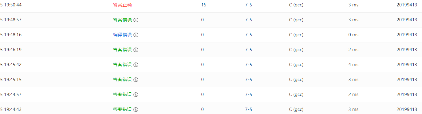 - 答案错误:想了很久再打的,打上去没编译错误,但是答案错误了,后来不信邪再试了几遍,再想改动一下。