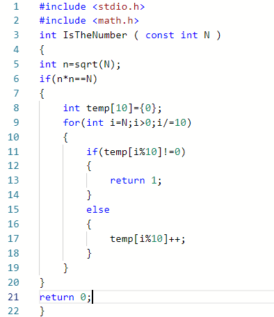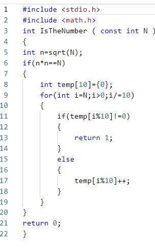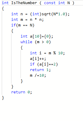 本题要求实现一个函数,判断任一给定整数N是否满足条件:它是完全平方数,又至少有两位数字相同,如144、676等。