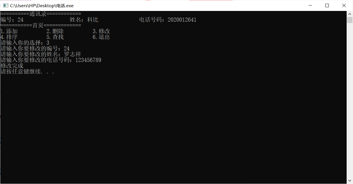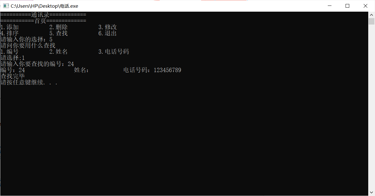 通讯录要能记录,查询,删除,编辑,因为通讯录空间有限。