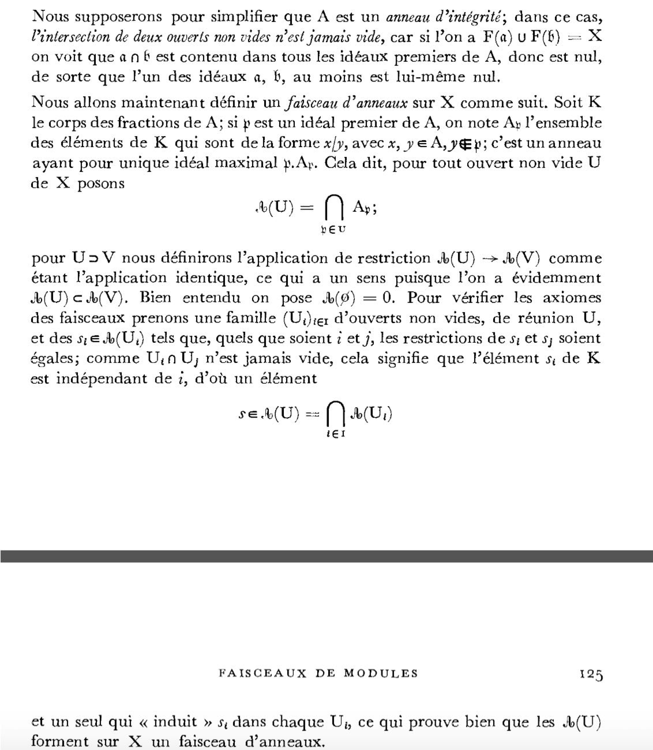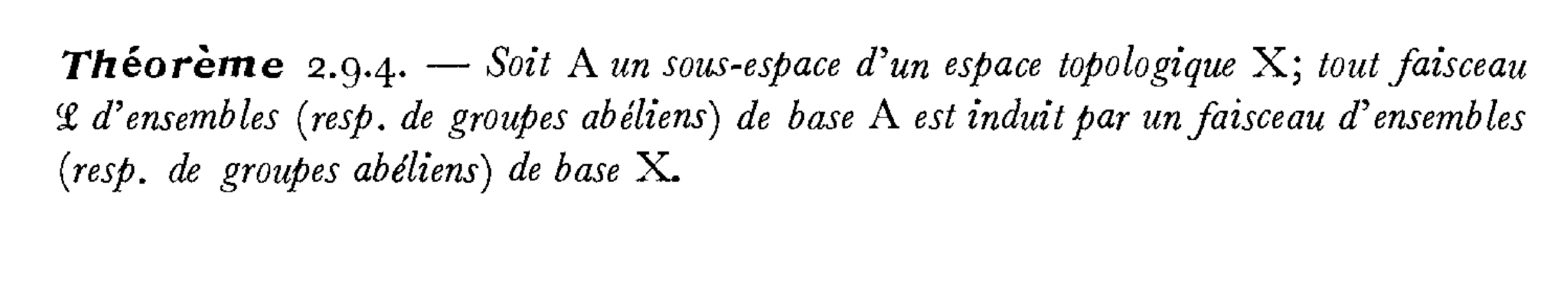 证明的过程全然是拓扑的验证。从espaces étalés角度看,我们把A上的section延拓到全部上,但如果A是X中开集,那这样的延拓与拓扑不是compatible的。