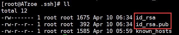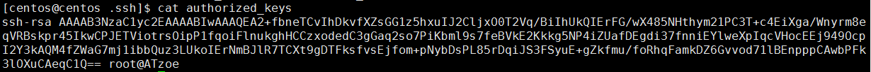 [root@ATzoe .ssh]# cat id_rsa.pub >>authorized_keys