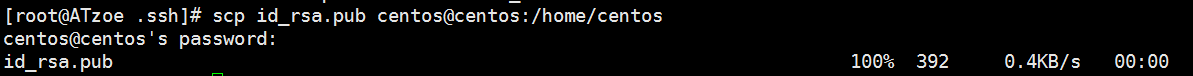 [root@ATzoe .ssh]# scp id_rsa.pub centos@centos:/home/centos