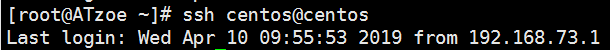 [root@ATzoe ~]# ssh centos@centos #此时仍然需要密码登录