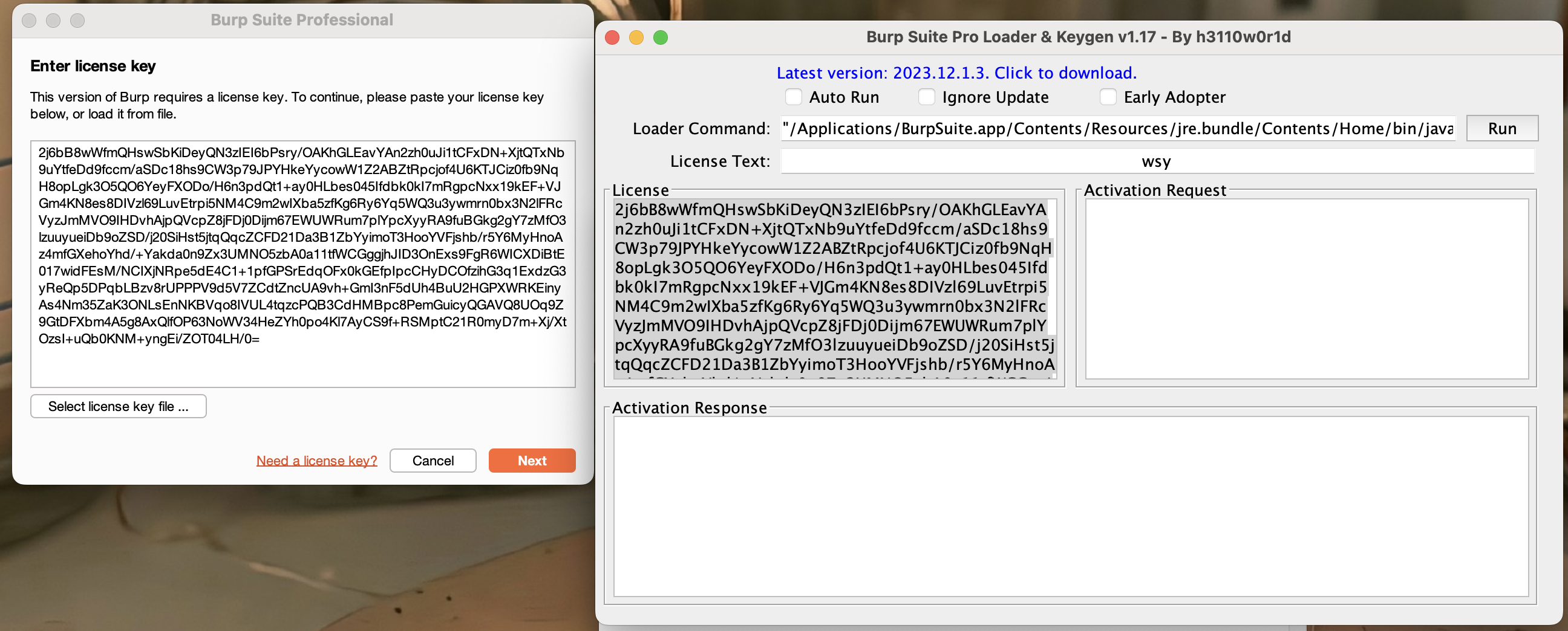 /Applications/BurpSuite.app/Contents/Resources/jre.bundle/Contents/Home/bin/java -jar /Applications/BurpSuite.app/Contents/Resources/app/BurpLoaderKeygen_v1.17.jar
