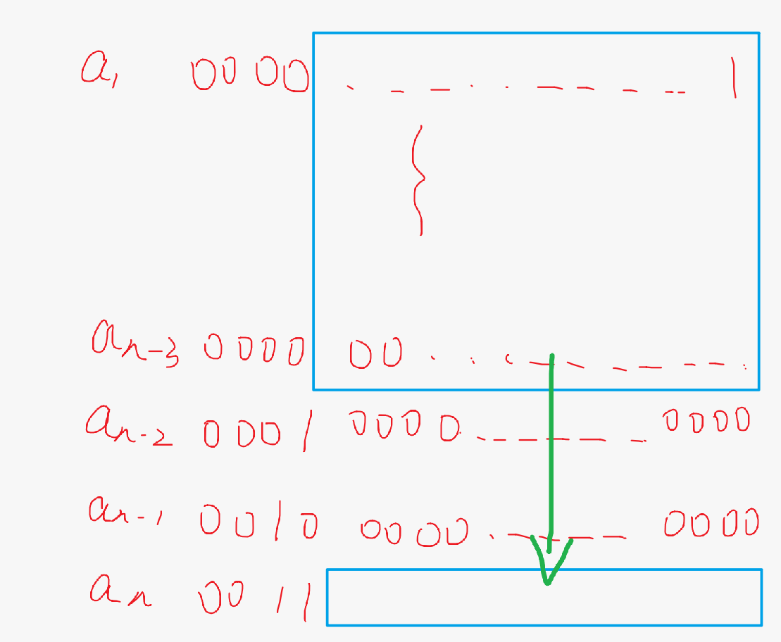 那么低位,就是a1一直异或到an-3的结果,这样也可以使得低位结果为0