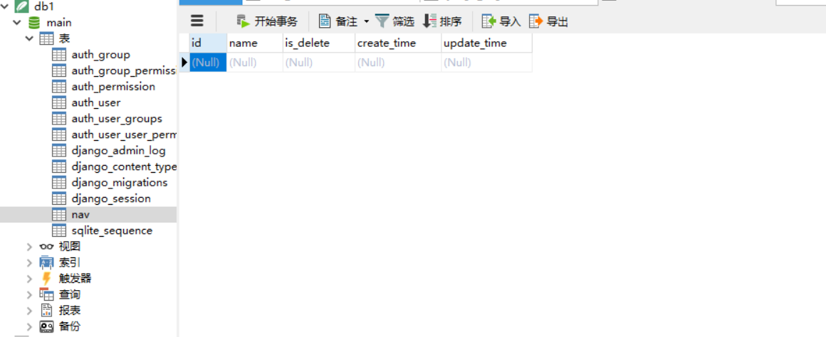 print(models.Nav.objects.all())#查询所有数据