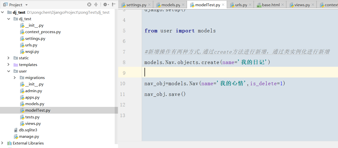 #新增操作有两种方式,通过create方法进行新增,通过类实例化进行新增