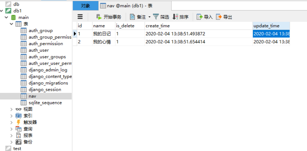 nav_obj=models.Nav(name='我的心情',is_delete=1)