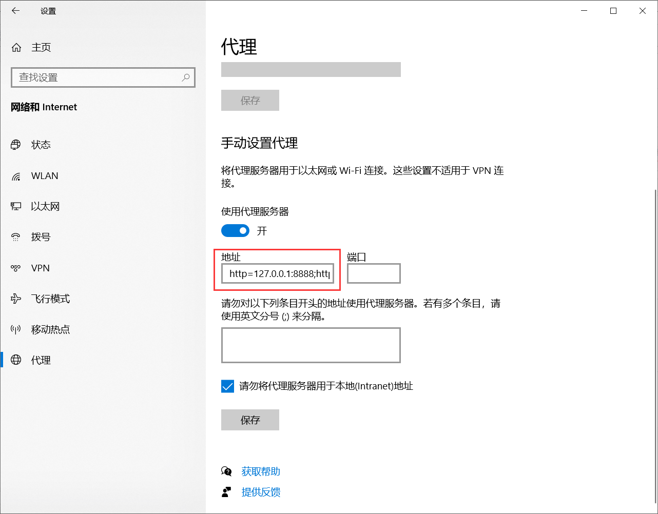 4.设置网络代理,网络代理:http=127.0.0.1:8888;https=127.0.0.1:8888
