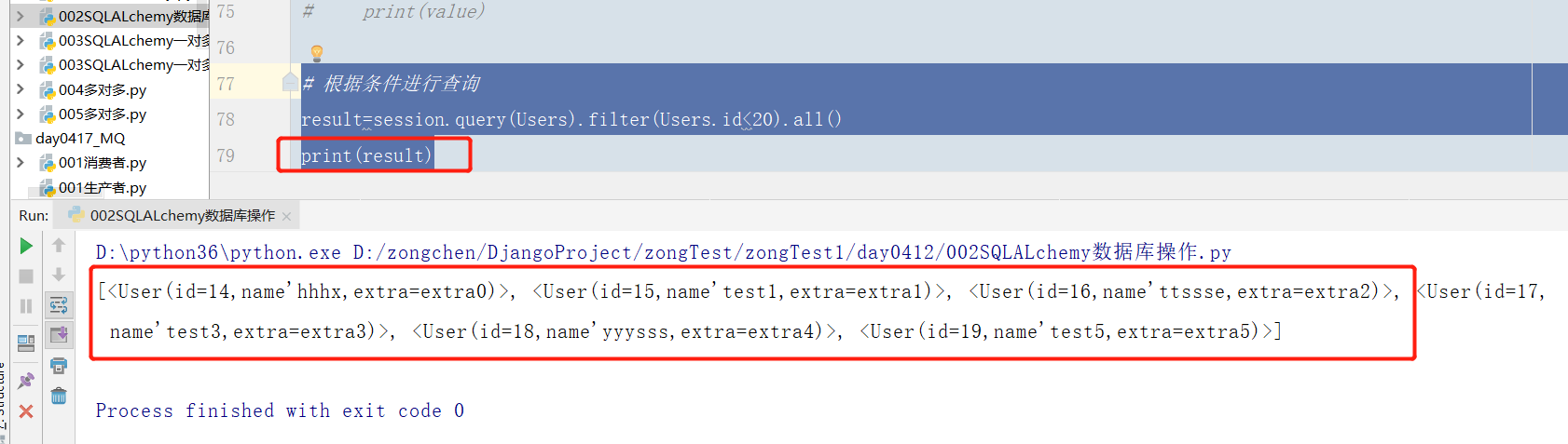 # 4.4根据条件进行查询 result=session.query(Users).filter(Users.id<20).all() print(result)