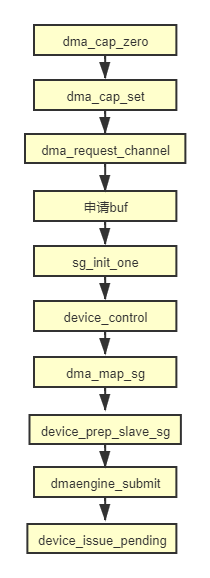Linux下用dma传输主要调用下面这些函数就可以实现外部的dma,下图为流程图