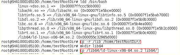 原因是缺少bash相关的库,使用ldd查看库并拷贝