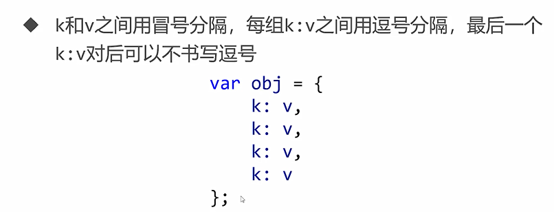 - 对象是"键值对"的集合,表示属性的值的映射关系