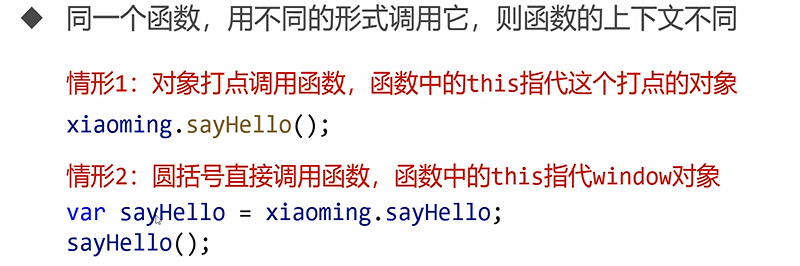 - 圆括号直接调用函数,则函数的上下文是window对象