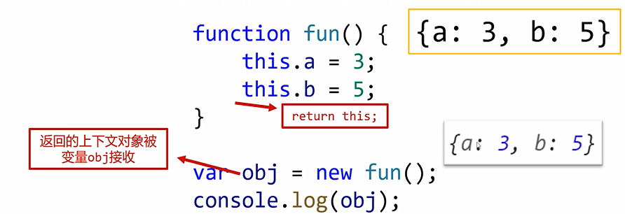 - 函数会自动返回上下文对象,即使函数没有return语句