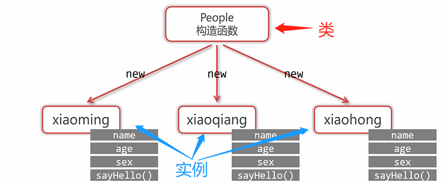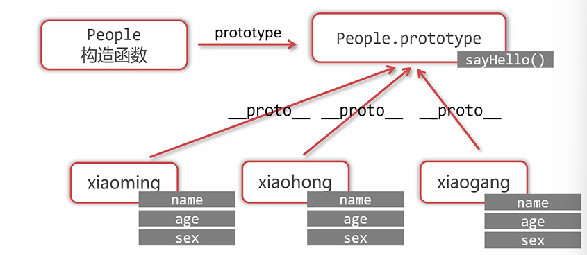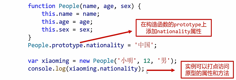 - 实例可以打点调用原型链身上的属性,如果本身就有就不用从原型链上面查找