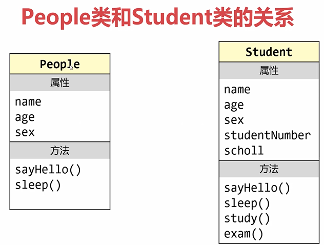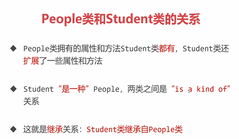 - 继承描述了两个类之间的is a kind of 关系,比如学生是一种人