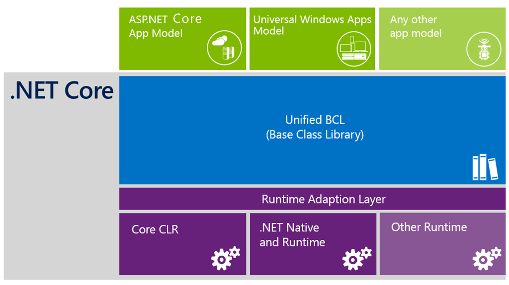 即CoreCLR。如之前所说,CoreCLR与.NET Framework的CLR并没有什么区别,进程管理,GC,JIT(RyuJIT 编译器)这些部分也都是一样的,只是针对服务器系统做了相应优化。现在CLR和CoreCLR也在进行同步更新,只是可以肯定的是,CoreCLR才是.NET的未来,CLR将作为兼容手段而存在Framework Libraries,