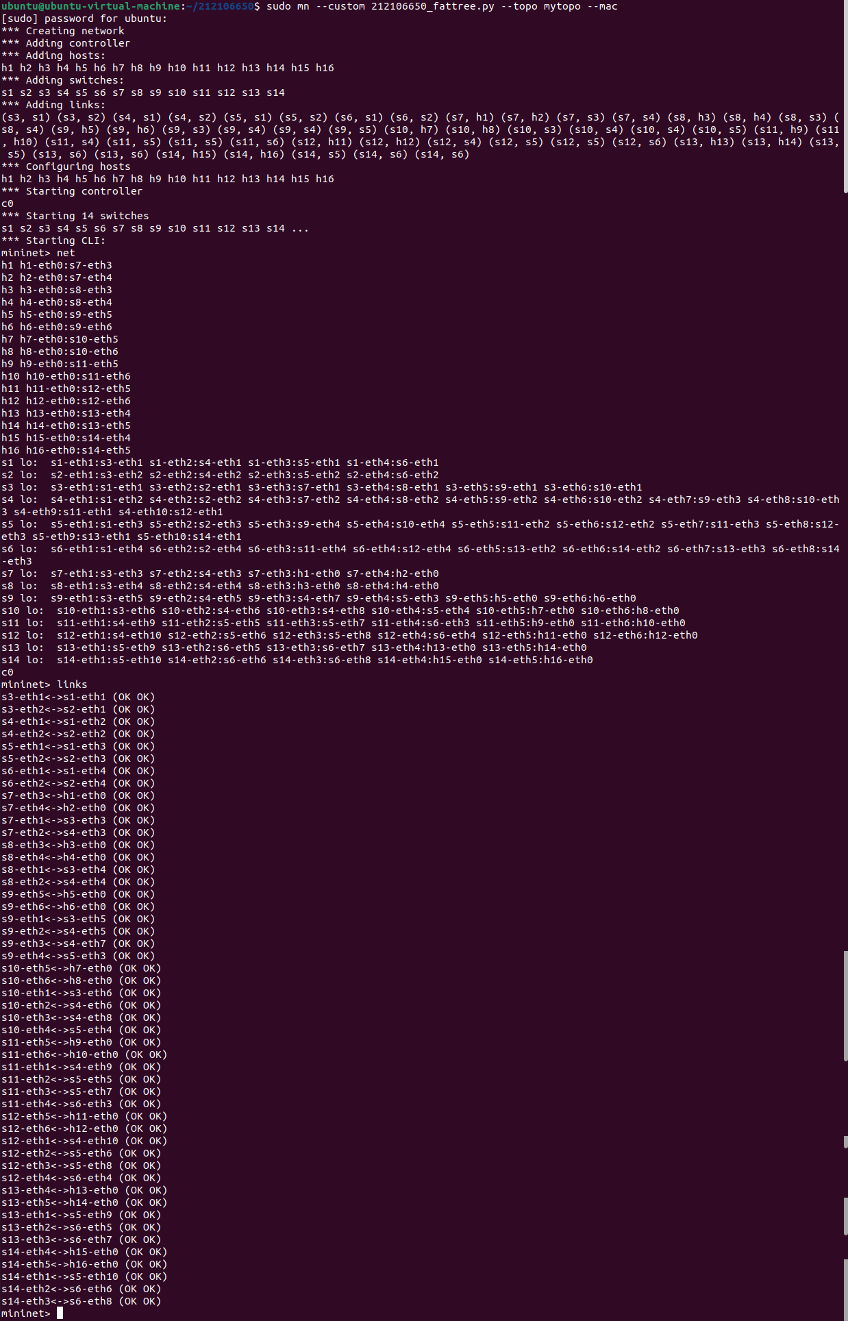 编写.py拓扑文件,命名为“学号_fattree.py”;