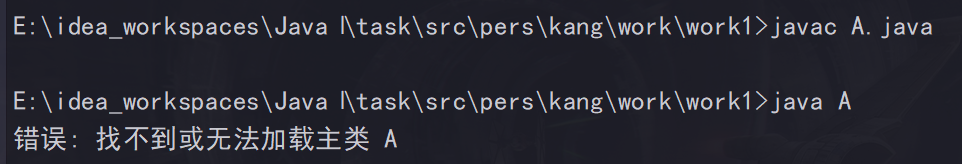 必须退到 src 下输入java pers.kang.work.work1.A 才能运行