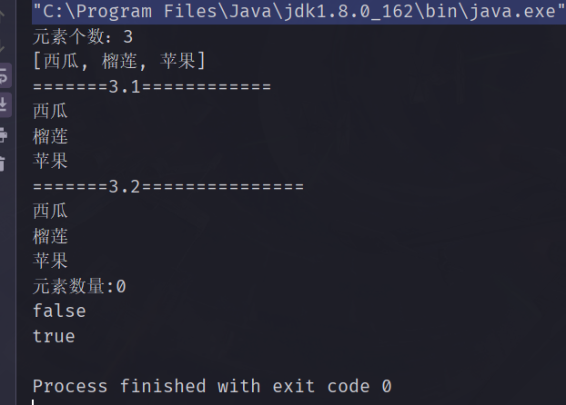 System.out.println("清理之后:" + collection + "\t" + "元素个数" + collection.size());*/