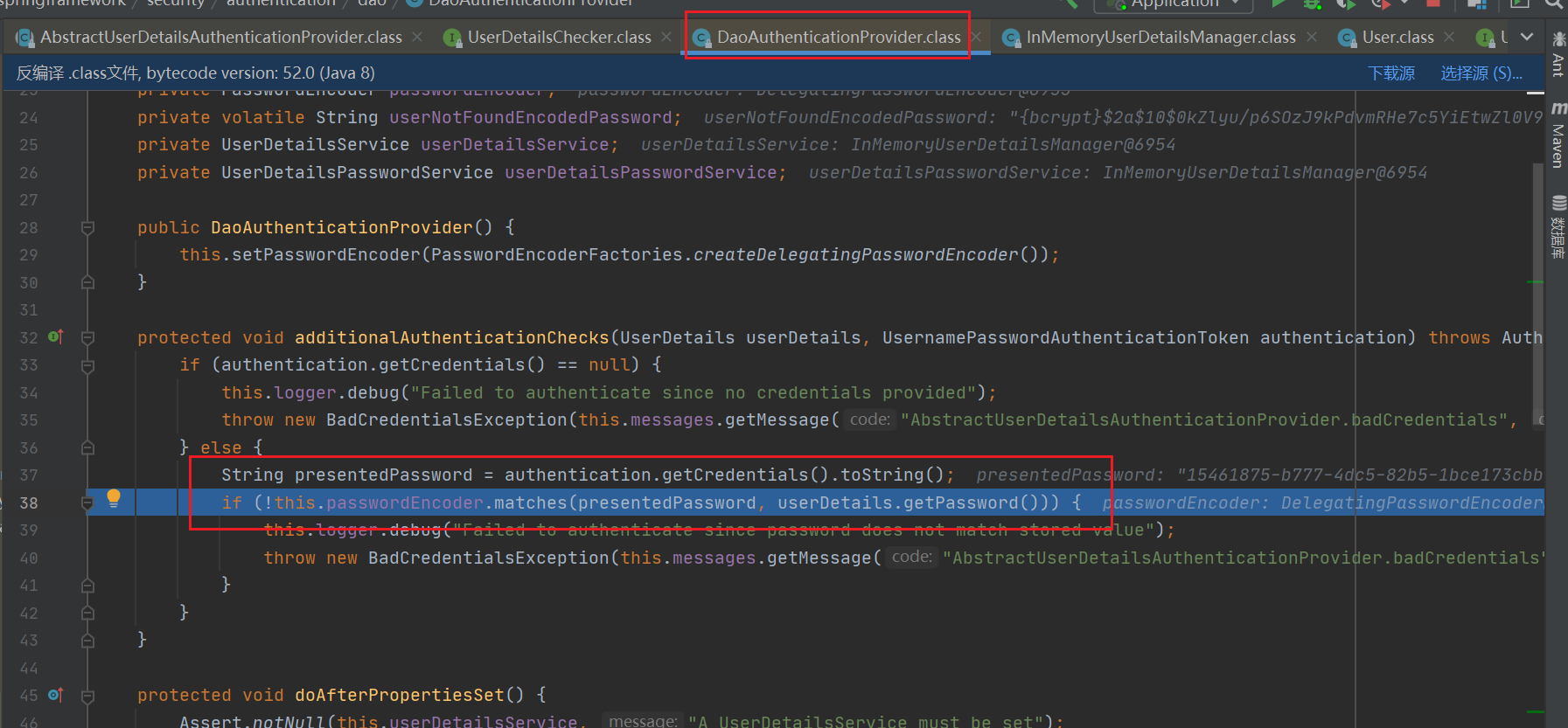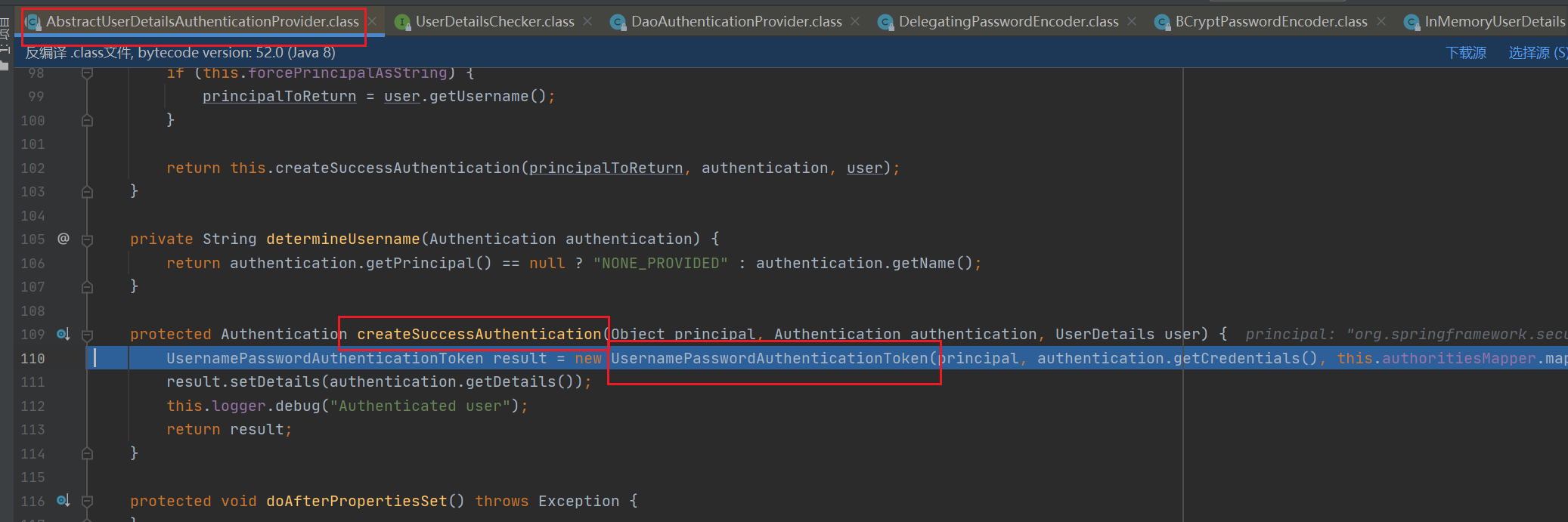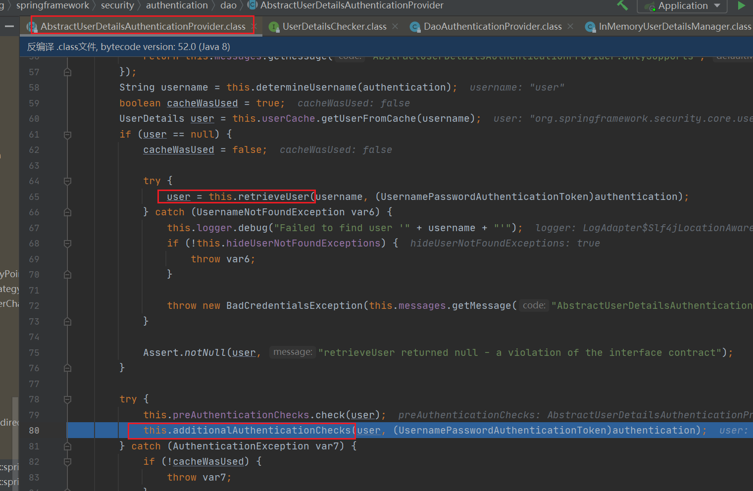得到用户信息后,就该返回认证提供对象中,对请求用户与库用户进行比如认证了。