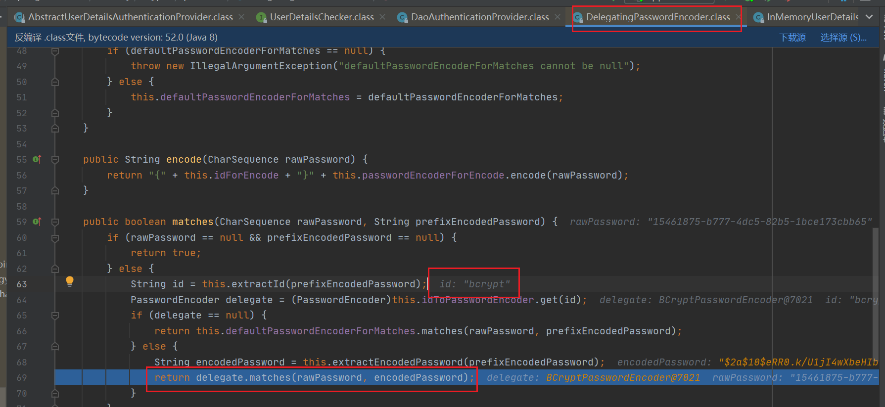 如果通过,就直接向后走,如果不通过就抛异常。而比对密码,采用了 bcrypt 方式