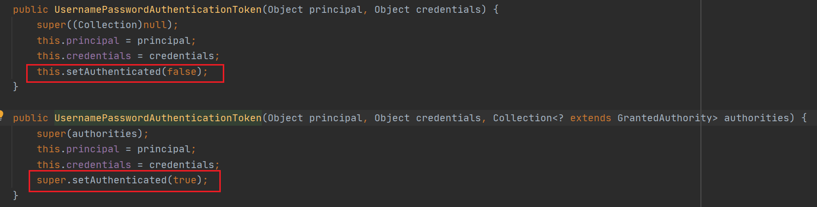 UsernamePasswordAuthenticationToken对象,其实前面也创建过,而后面创建的这个与前面的不同之处在于,前面的是用的两参构造,后面用的是三参构造。出现的不一致现象就是