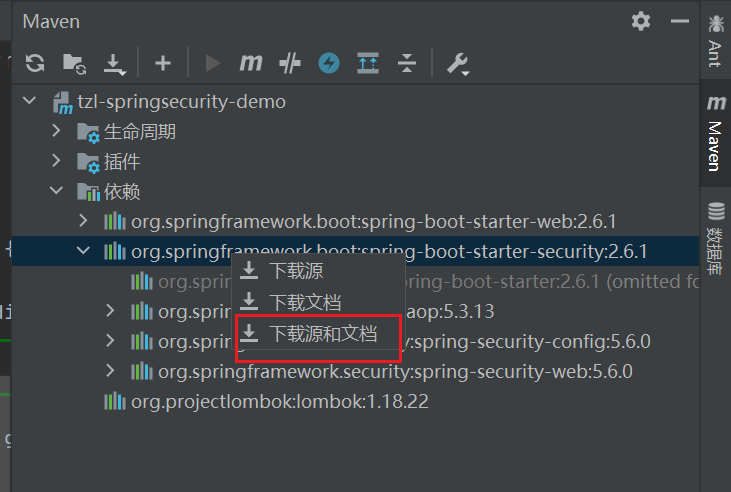 打开Maven的控制面板,右键某个依赖库,点击下载源和文档即可。