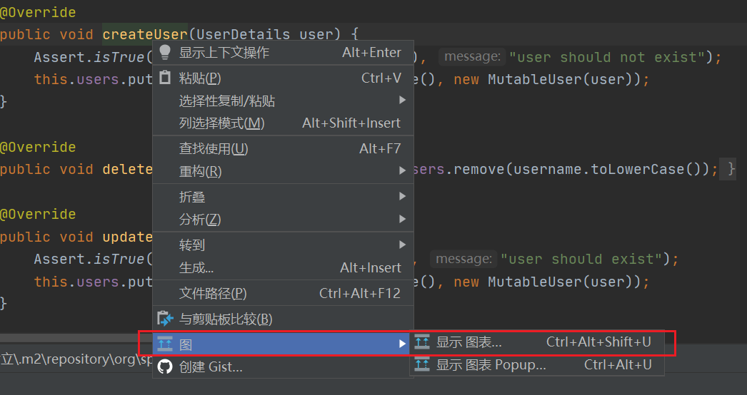 当想查看类的依赖关系时,可以通过右键,显示结构图来看