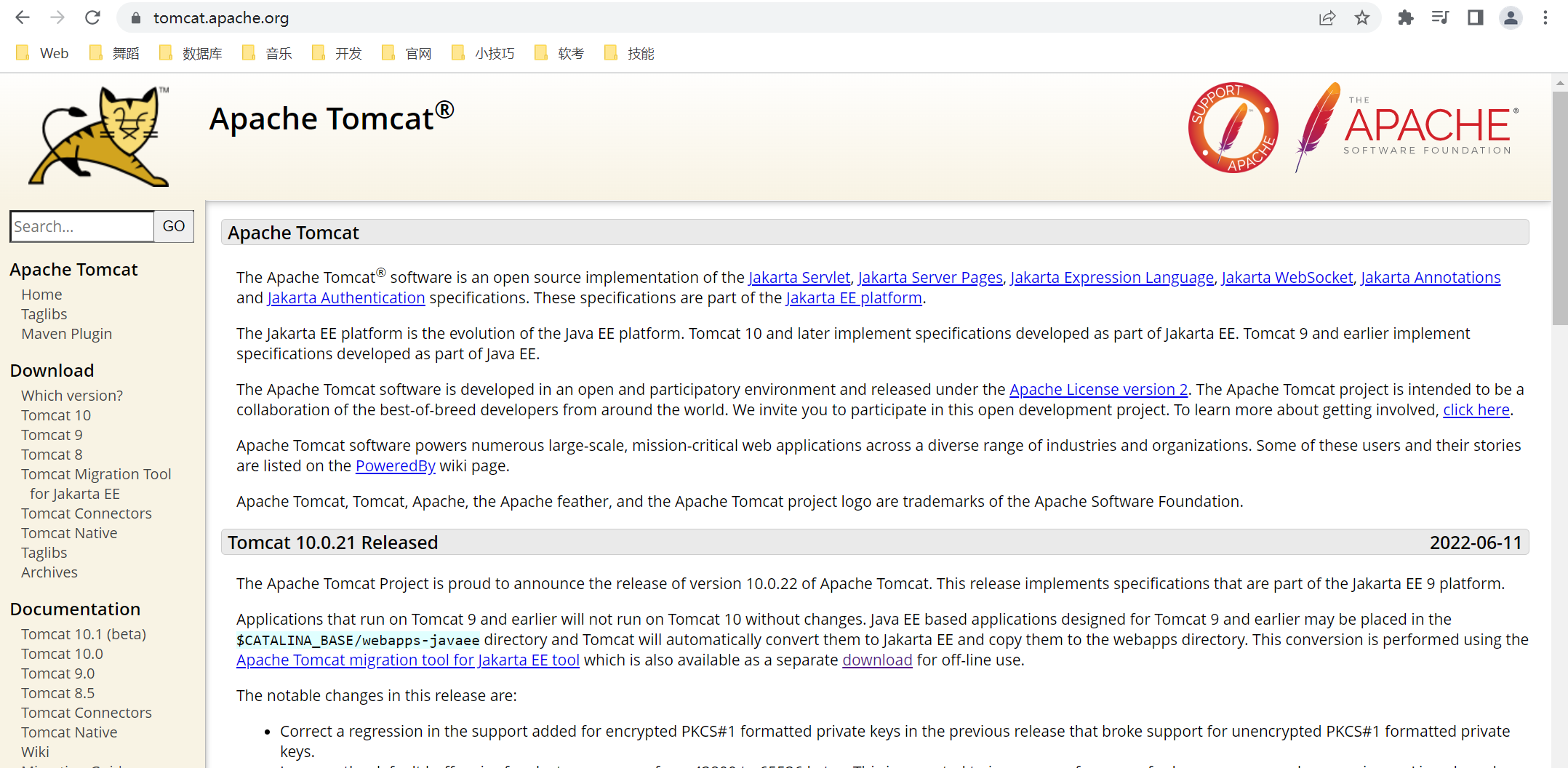 通过地址【https://tomcat.apache.org/】或者直接百度搜索 tomcat官网,都能跳转到该地址