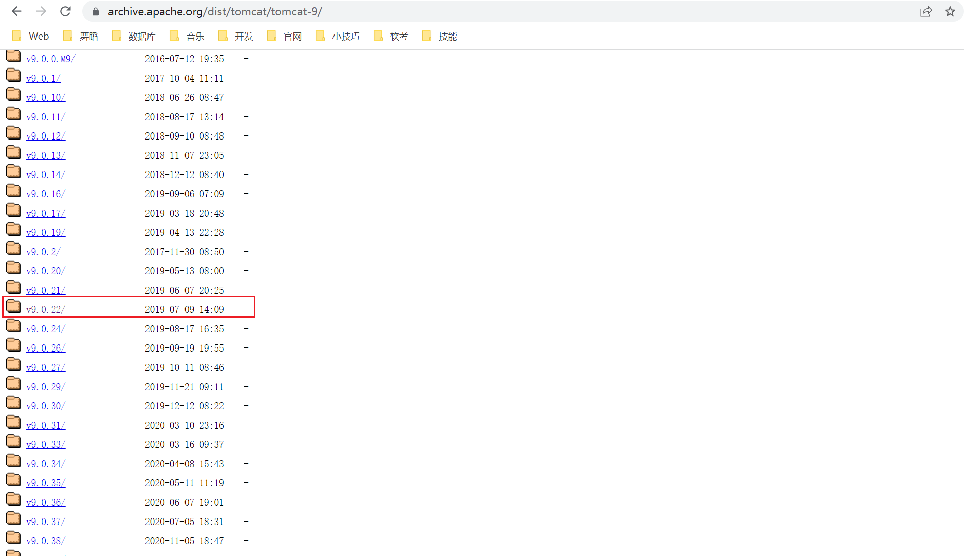 下面以下载9.0.22版为例,点击Archives打开