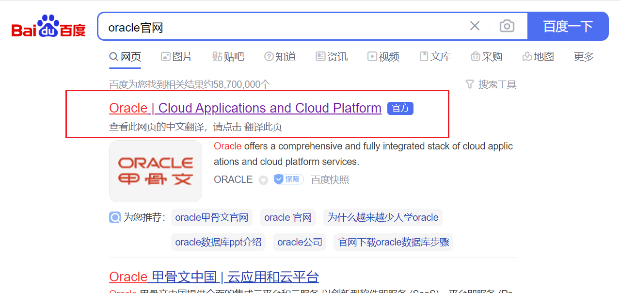 直接通过地址【https://www.oracle.com/index.html】进入,或者百度搜索oracle官网