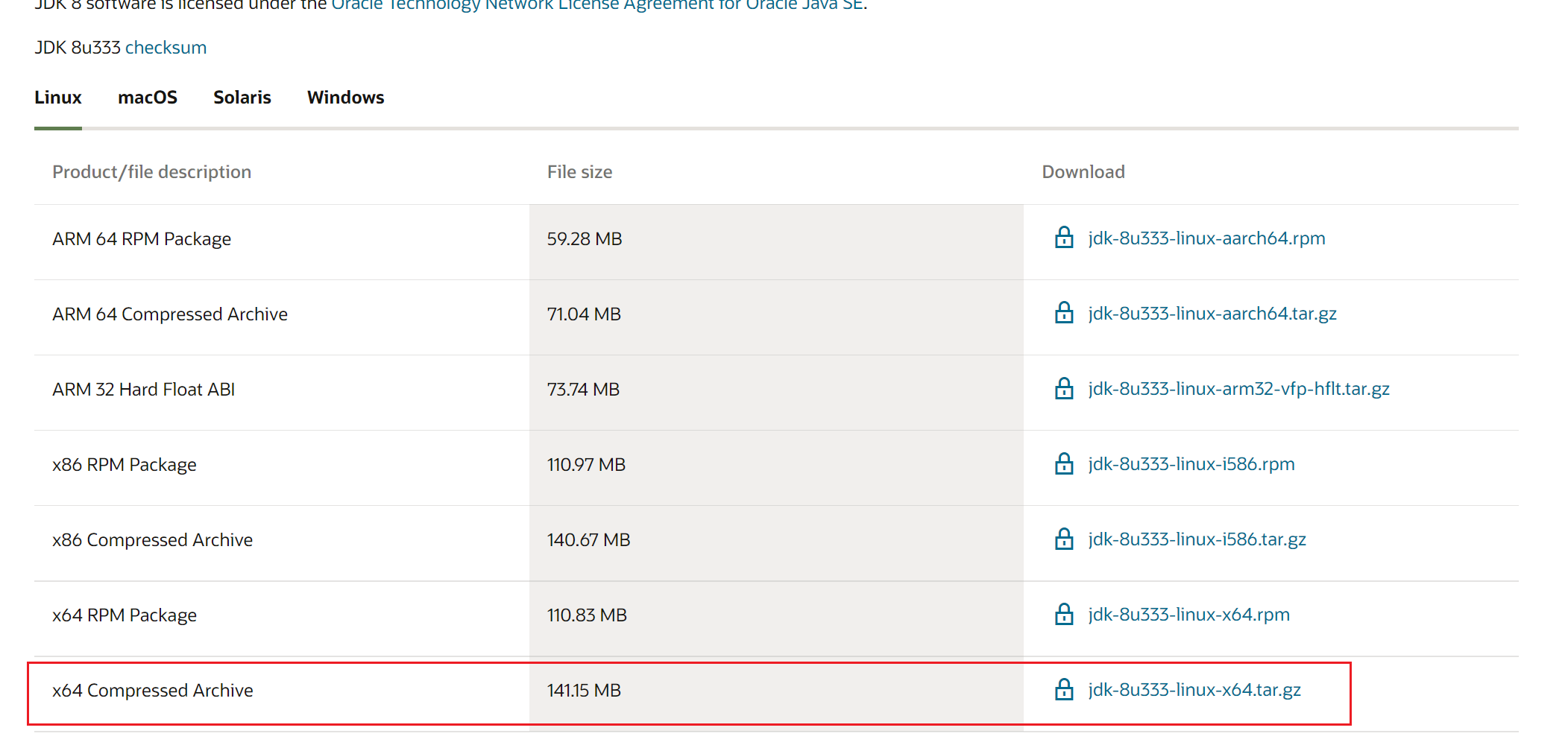 在【001-Java Linux 部署——一切从最简单的开始】节中,其实已经提到了jdk的下载。但是本节中,还是再特意说明一下吧,找这个下载包官网上的完整操作步骤(其实没准个把月或者个把年后,位置就又变了)。
