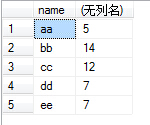 (4)例如我们执行select name,sum(number) from test group by name,那么sum就对虚拟表3的number列的每个单元格进行sum操作,例如对name为aa的那一行的number列执行sum操作,即2+3,返回5,最后执行结果如下: