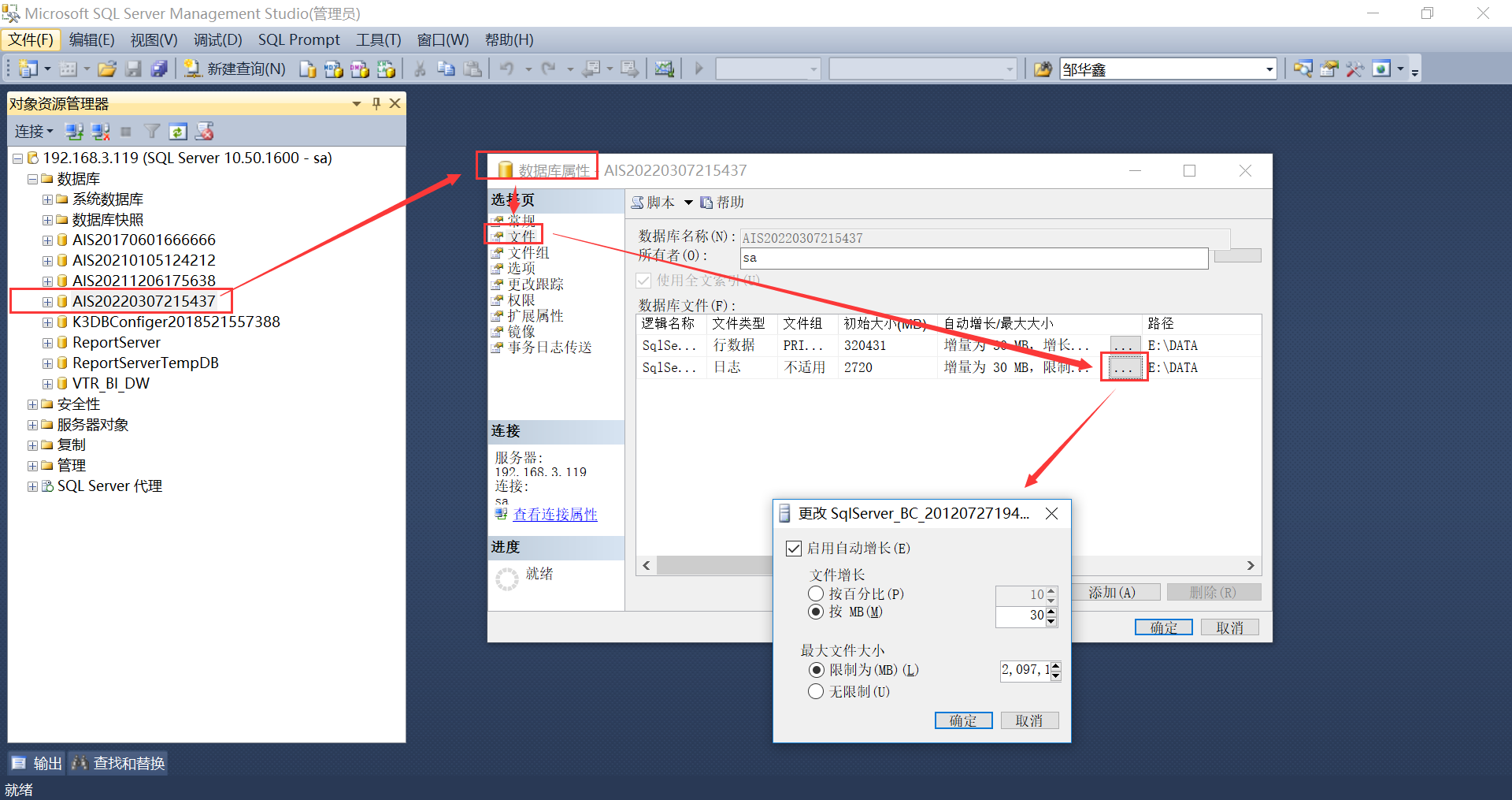 SQLSERVER限制日志文件的最大大小
