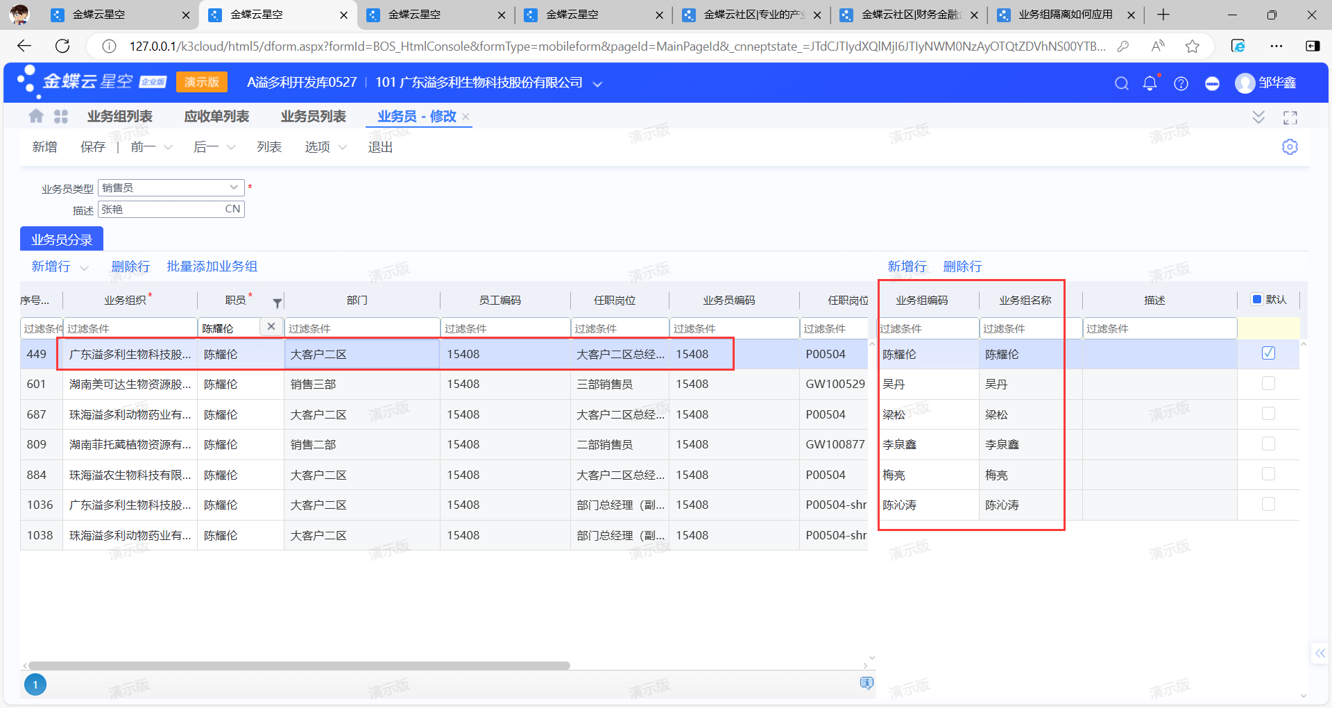 查看销售员对应哪些销售组