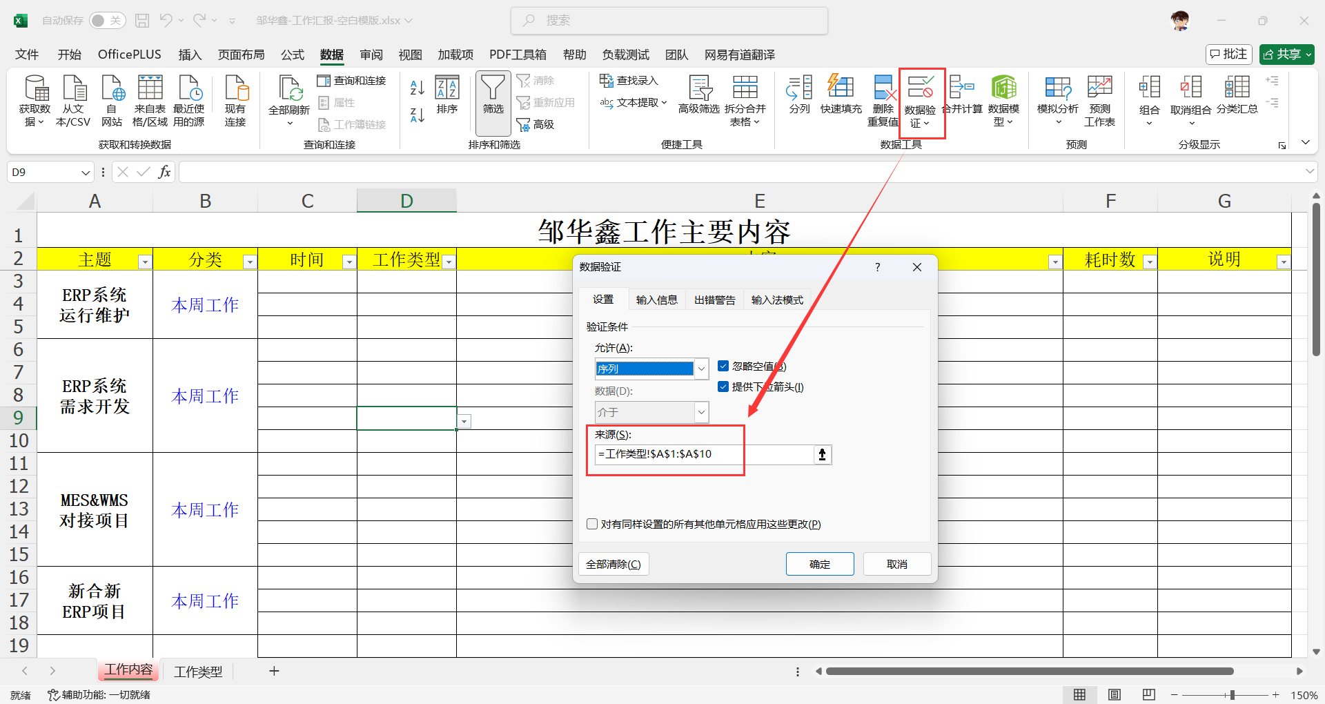 EXCEL单元格设置下拉列表以及修改数据来源